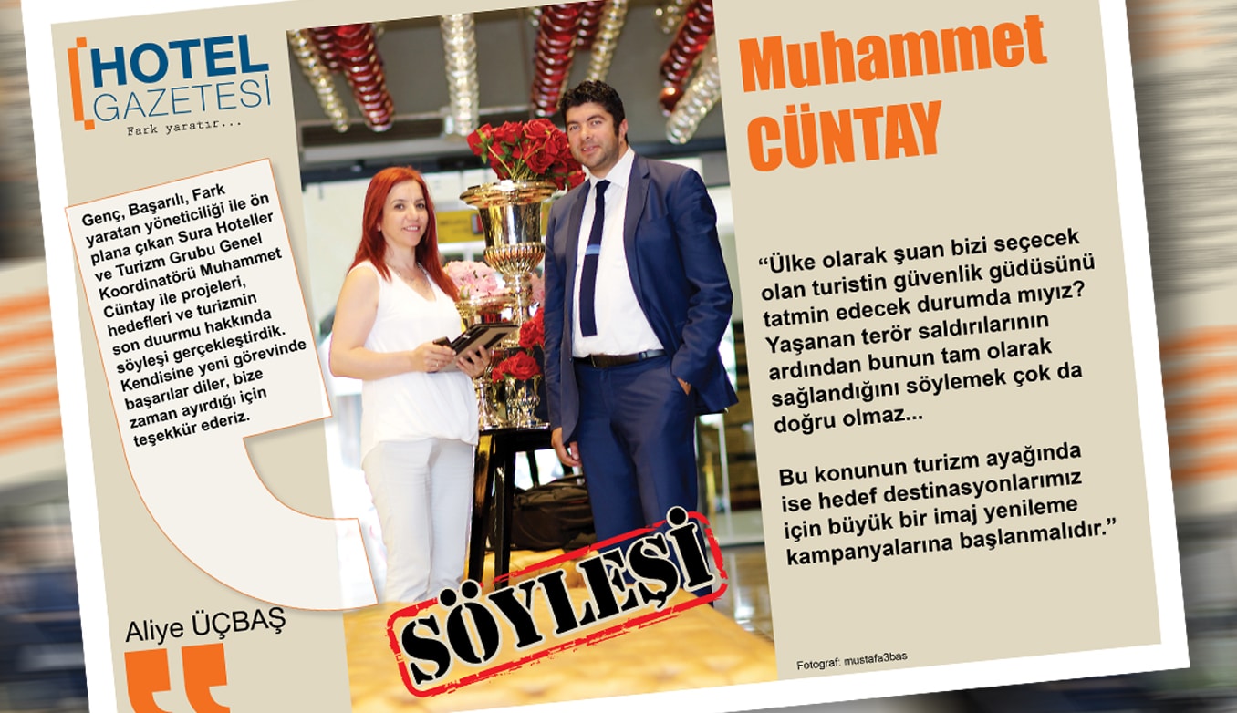 Genç, Başarılı, Fark yaratan yöneticiliği ile ön plana çıkan Sura Hoteller ve Turizm Grubu Genel Koordinatörü Muhammet Cüntay ile projeleri, hedefleri ve turizmin son durumu hakkında söyleşi…