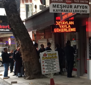 Afyonkarahisar’da olduğumu duyan arkadaşlarım kaymaklı Afyon lokumusipariş ediyorlar. İşi bilenler adres de veriyor: Öztaylan Yayla Şekerleme. Afyon’a bu ikinci seyahatim. İlkinde Uzun Çarşı içerisinde yer alan bu dükkanın önündeki kuyruktan gözüm korkmuş, başka bir lokumcudan satın almıştım lokumlarımı. İstanbul’a döndüğümde Afyonlu arkadaşım Mustafa bastı fırçayı: Afyon’da bir tek Yayla’dan alacaksın lokumu, diğerleri kaymaklı lokumu yapamıyor!