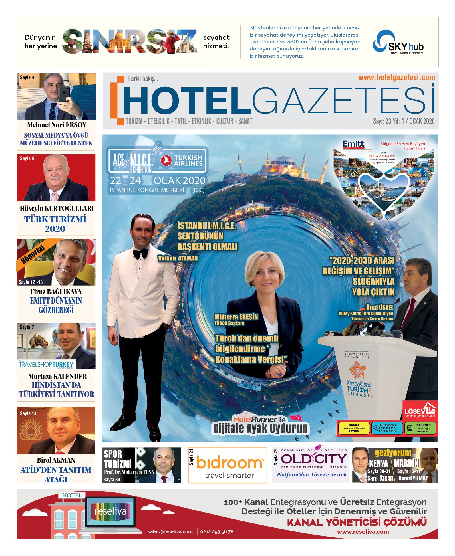 Birbiri ardına hazırladığımız dosyalar, sektörün can damarı organizasyonlar, çalıştaylar, şuralar, o kadar üst üste geldi ki, 24 sayfa ile 32 safya arasında değişen gazetemizi, yeni yılın bu ilk ayında tam 48 sayfa olarak hazırladık. Çünkü turizm sektörü kendi kabına sığmadığı bir döneme girince biz de sayfalarımıza sığamadık.