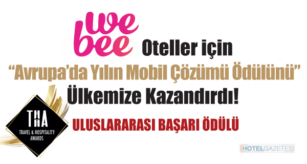 Turizm sektöründe en başarılı otel ve tur şirketlerine ödüller veren İngiliz Firması Travel and Hospitality Awards (THA), Avrupa’da Yılın Misafir Etkileşim Çözümü Ödülüne ülkemizin başarılı start-up’ı WeBee’yi layık gördü. THA yetkilileri neden WeBee’yi seçtiklerini üç kriterde belirttiler: “Kullanıcı dostu mobil arayüzü ile otellere somut ve gerçek zamanlı değer üretmesi, mükemmel kullanıcı yorumları, otellerin gelirlerinde artış ve komisyon giderlerinde düşüş sağlanması”.