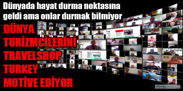 TravelShop Turkey, dünyada ilk defa, global turizm camiasına yönelik olarak bir online motivasyon sunumu gerçekleştirdi. Firmanın yurtdışı temsilcilikleriyle çevrimiçi olarak yapılan toplantıda, motivasyon sunumu yapıldı. Dünyada ilk kez bir Türk firması bunu başarıyla hayata geçirirken, dünya turizmine yön veren isimlerin, bu organizasyona gösterdikleri yoğun ilgi, TravelShop Turkey yetkililerini de memnun etti. 50’ye yakın ülkeden 200’ü aşkın turizm profesyonelinin hazır bulunduğu organizasyon başarıyla sonuçlanırken, turizm dünyasının ilgisi, TravelShop Turkey’i bu defa aynı organizasyonu yerel sektör temsilcileriyle düzenlemeye yöneltti.