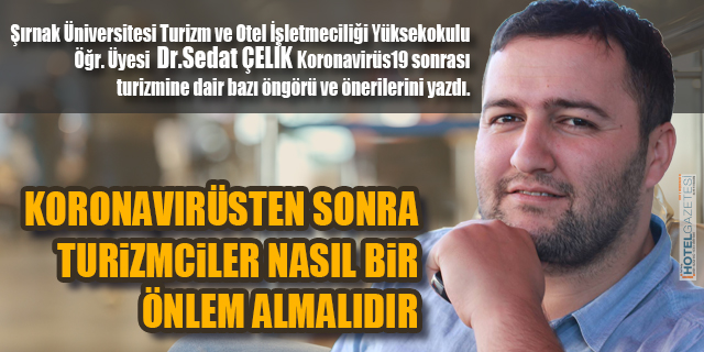 Şırnak Üniversitesi Turizm ve Otel İşletmeciliği Yüksekokulu Öğr. Üyesi Dr.Sedat ÇELİK Koronavirüs19 sonrası turizmine dair bazı öngörü ve önerilerini yazdı.