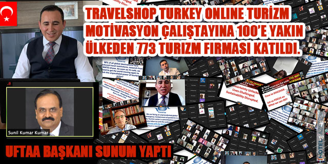 TravelShop Turkey’in Turizm sektörünü motive etmek için başlattığı, telekonferans dizisinin dördüncüsü gerçekleşti. Zoom uygulaması üzerinden, online olarak gerçekleşen toplantıya, 100 ülkeden 773 Turizmci kayıt yaptırdı. UFTAA Başkanı Sunil Kumar sunum yaptı.