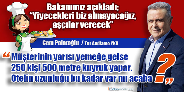 Sayın Bakanımız “Her şey dahil sistemi devam edecek, ancak yiyecekleri biz almayacağız, aşçılar verecek” dedi.