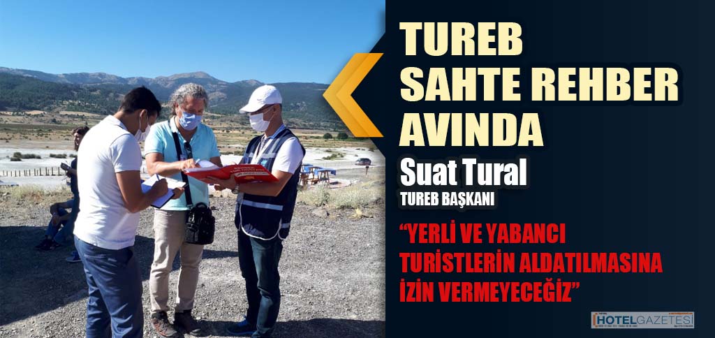 Türkiye Turist Rehberleri Birliği (TUREB), eş zamanlı olarak bazı önemli turizm bölgelerinde sahte rehberlere yönelik denetimler gerçekleştirdi. Denetimlerde çok sayıda sahte rehber ve kaçak acente tespit edildi. TUREB Başkanı Suat Tural, denetimlere devam edeceklerini bildirerek, “Yerli ve yabancı turistlerin aldatılmasına izin vermeyeceğiz” dedi.