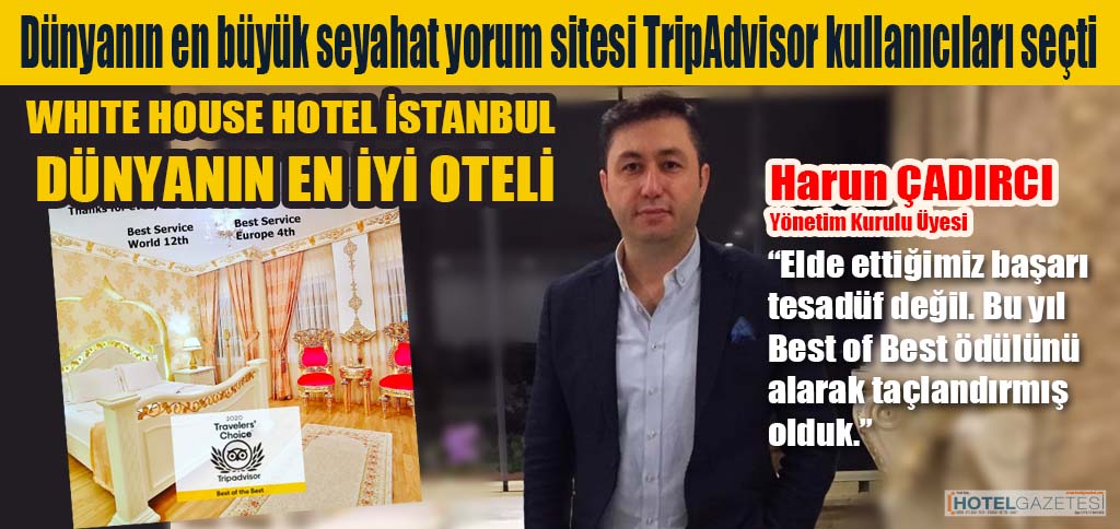 White House Hotel İstanbul Dünya listesinin 12. sırasında yer alırken, kullanıcı yorumlarından “Mükemmel bir konum, harika bir otel, Cana yakın personel” yorumu ile “Tatilimizin en iyi zamanını geçirdik, White House personeli harikaydı ve Yönetici Harun (Çadırcı) mükemmeldi” yorumlarına yer verildi.