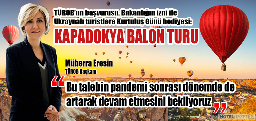 Pandemi sebebiyle Sivil Havacılık Genel Müdürlüğü tarafından Kapadokya bölgesindeki sıcak hava balon turlarının 1 Ekim 2020 tarihine kadar ertelendiğini hatırlatan TÜROB Başkanı Müberra Eresin, başta Kapadokya ve Kayseri bölgeleri olmak üzere Ukraynalı turizmciler tarafından TÜROB’a çok sayıda talep ulaştığına dikkat çekti. Eresin, şunları söyledi: “Ulaştırma ve Altyapı Bakanımız Sayın Adil Karaismailoğlu’nun her zaman için sektörümüze olan yakın ilgi ve desteğinden hareketle konuya ilişkin Sayın Bakanımız ile temasa geçtik. Gerekli önlemler alınarak Ukrayna Bağımsızlık Günü dönemiyle sınırlı kalmak üzere sıcak hava balon turlarının başlatılması için yetkili kurumlara talimatları neticesinde gerekli izinlerin sağlandığını memnuniyetle öğrenmiş bulunuyoruz. Sektörümüzün içinde bulunduğu zorlu şartlar altında konuya büyük bir hassasiyetle yaklaşıp hızlı bir şekilde çözüm sunan Sayın Bakanımıza şükranlarımızı sunuyoruz.”
