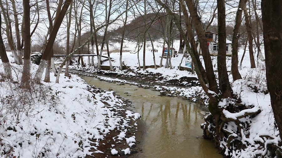 Tekirdağ-Şarköy yolundaki dağların eteklerinde bulunan ormanlar, kar yağışının ardından güzel görüntü oluşturuyor.  Her mevsim farklı doğal güzellikler sunan dağ ve ormanda oluşan güzellik, insana ayrı bir keyif veriyor.