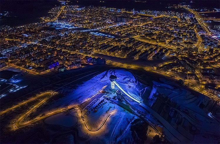 Kar yağışıyla adeta gelinliğini giyen kentin gündüz hali ile ışıklandırılan gece görüntüsü seyrine doyumsuz manzaralar sunuyor.