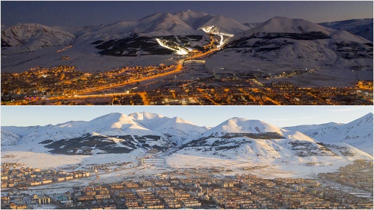 Son yıllarda ülkenin özellikle kış turizmi açısından parlayan yıldızı olan Erzurum, beyaza büründüğü bugünlerde gece ayrı, gündüz farklı güzelliğe bürünüyor.
