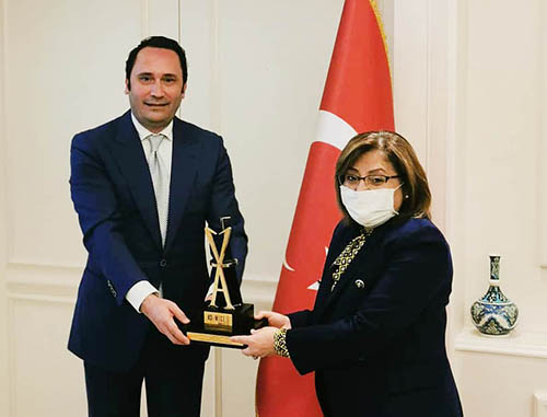 Gastronomi Turizmi Derneği Başkanı Gürkan Boztepe ve TMG Başkanı Volkan Ataman; Gaziantep Büyükşehir Belediye Başkanı Fatma Şahin’i makamında ziyaret etti.