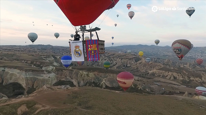 Real Madrid ile Barcelona arasında oynanacak El Clasico maçı öncesi Kapadokya’dan görüntüler içeren bir video yayımlandı. Tanıtım görüntülerinde, sıcak hava balonu üzerinde Real Madrid ve Barcelona bayrakları dalgalandırıldı.