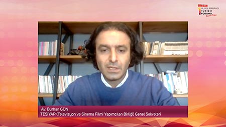 Panelde, Televizyon ve Sinema Filmi Yapımcıları Birliği Genel Sekreteri Av. Burhan Gün, cümlelerine ‘‘Kültür ve Turizm Bakanlığı’nın idari ve mali denetiminde olan, kanun maddesine göre kurulmuş bir meslek birliğiyiz. Temel görevimiz, fikir mülkiyet haklarının korunması ve üyelerin hem sinema, hem fikri mülkiyet alanlarında temsili ile ilgili uluslararası anlaşmalar üzerinden dünyada temsilini sağlamak. Türkiye’deki ana akım dizi sektörünün büyük çoğunluğu bizim üyemizdir. Dolayısıyla geniş kapsamlı bir temsil kabiliyetimiz bulunuyor. Bunun yanı sıra strateji de oluşturuyoruz.’’ şeklinde başladı.