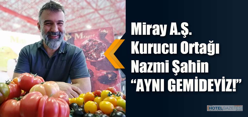 Kurulduğu günden itibaren deneyimli kadrosuyla hizmet veren şirket, otel, tatil köyü, catering şirketleri, okullar, gross marketlere meyve-sebze tedarikçiliği yaparken Miray A.Ş. Kurucu Ortağı Nazmi Şahin, ülke olarak Pandemi nedeniyle zor günler geçirdiklerini ancak bu dönemi de özveri ile aşacaklarını söyledi. Şahin “Ülke olarak Pandemi nedeniyle zor günlerden geçmekteyiz. Aynı amaç ve sonuç için mücadele ediyoruz. Aynı gemideyiz. Ortak değerlerimiz beli, ortak çıkarlarımız belli. Biz otel tedarikçiliği yada turizm sektörünün ufak bir parçasıyız. Bizim dışımızda yüzlerce ara tedarikçi var. Onların altında da binlerce alt tedarikçi var. Hepimiz için zor bir dönem. Zor bir yıl. Bu ekonomik darlık ve problem bir noktada son bulacak. Önemli olan bu zamana kadar oyunun içinde kalıp hizmet üretmeye devam edebilmek.”dedi.