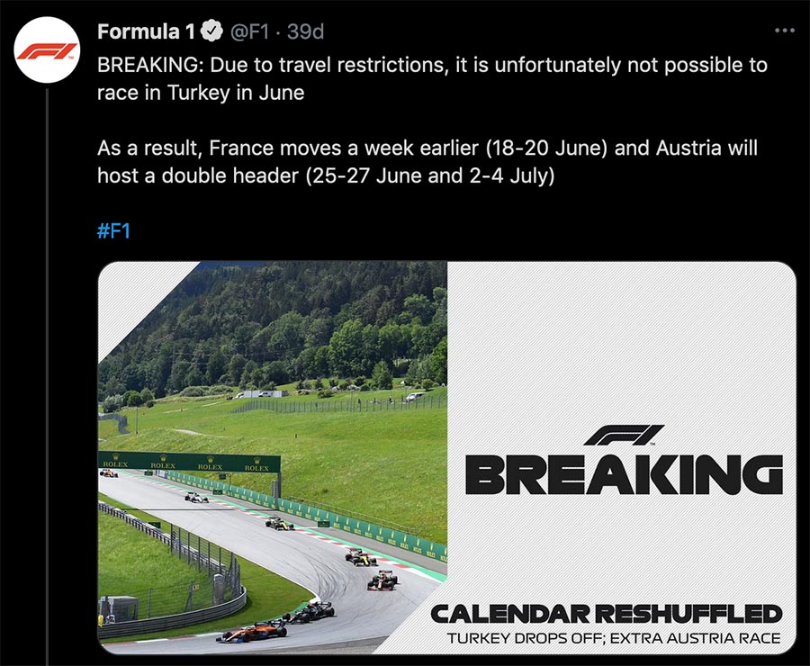 Anasayfa » Blog » Formula 1 Türkiye GP’si iptal edildi