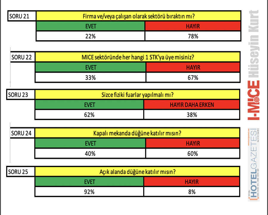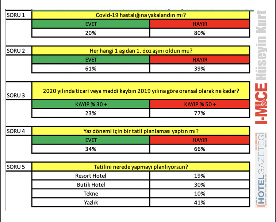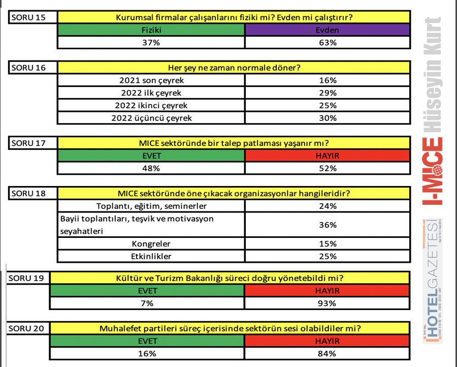 I-MICE Başkanı ve TÜRSAB Yönetim Kurulu Üyesi Hüseyin Kurt’un yaptığı anket, Pandeminin turizm sektörü üzerinde yaptığı korkunç tahribatı gözler önüne serdi.
