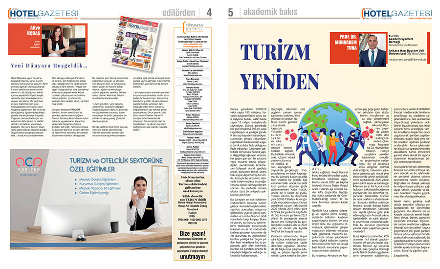 Geçmişte, ülkemizin cari açığının zaman zaman tamamına yakınını, kimi yıllarda ise yarıdan fazlasını turizm gelirleri sayesinde kapattık. Yıllardır turizm sektörü ülke ekonomimize önemli katkılar sağladı. Bu katkılar dinamik, zeki, çözüm odaklı yatırımcılarımız ve nitelikli insan kaynağımız sayesinde gerçekleşti. Yatırımcılarımız ve insan kaynağımız bu zamana kadar yaşadığı tüm krizlerle bir şeklide baş etmesini bildi. Ancak bu defa krizi yaratan düşman gözle görünmeyecek kadar küçük, ancak bir o kadar da güçlü. Turizm sektörü bu düşmanla yani COVID 19 belası ile var gücüyle mücadele ediyor. Dünya genelinde turizm sektöründe 2020 yılında 2019 yılına göre %73’lük bir gerileme kaydedildi. Söz konusu gerileme 2021 yılının ilk çeyreğinde artarak devam etti. Türkiye de bu gerilemeden nasibini aldı ve 2020 yılını bir önceki yıla kıyasla %69’luk bir kayıpla kapattı.