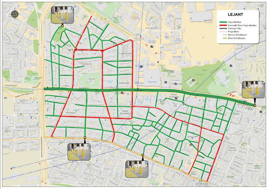 UKOME kararı doğrultusunda; bölgede yayalaştırma kararı bulunan 59 adet cadde ve sokağa ilaveten 28 adet cadde ve sokak daha yayalaştırılacak. Tramvayın geçtiği Ordu Caddesi dahil toplam 16 adet cadde ve sokakta, kontrollü trafik sirkülasyonu sağlanacak.