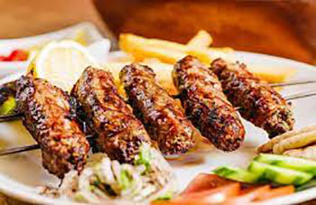 Şeftali Kebabı. Aslı; Şef Ali kebabıdır ; Yani Şeftali ile alakası yok. Koyun ya da keçi etinin kıymasının, maydanoz ve baharatlarla yoğrulduktan sonra hayvanın terp adı verilen içyağına sarılması ve köfte halinde hazırlanarak kömürde pişirilmesi suretiyle yapılır.