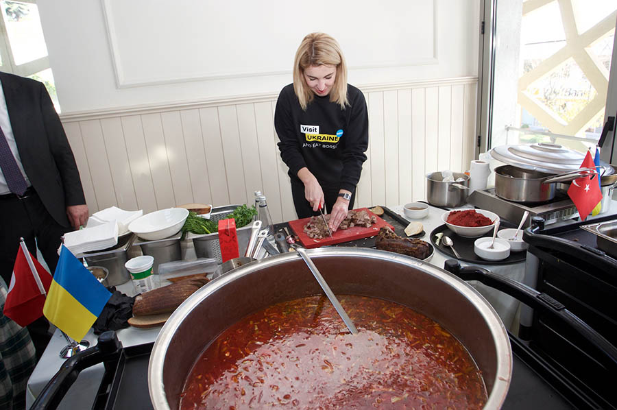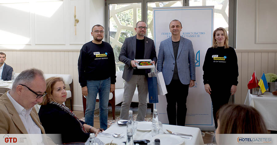 Gastronomi Turizmi Derneği’nin düzenlediği etkinlikte, katılımcılara Ukrayna’nın Borş Çorbası ve Türk Döneri tattırıldı.