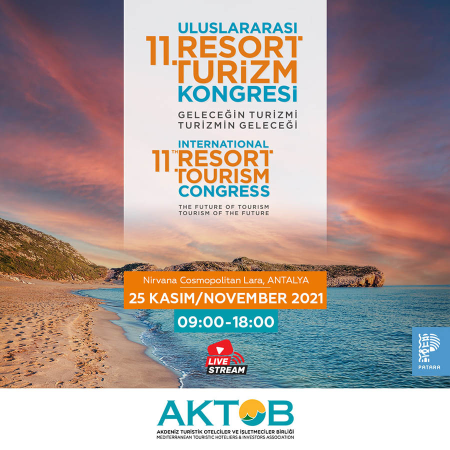 Dünya, Türkiye ve Antalya turizmine yön veren sektör temsilcilerinin bir araya geldiği en büyük buluşmalarından birisi olan, Uluslararası Resort Turizm Kongresi bu yıl 11. kez AKTOB ev sahipliğinde gerçekleşecek. DenizBank Ana sponsorluğunda “Geleceğin Turizmi, Turizmin Geleceği” ana teması ile organize edilen Kongre, 25 Kasım 2021 de Nirvana Cosmopolitan Hotel Lara’da yapılacak.