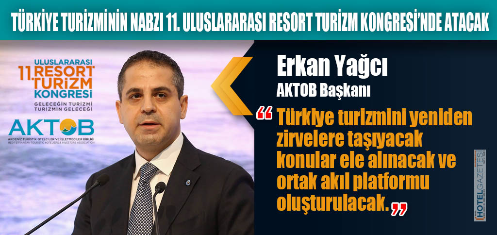 Turizmin mevcut durumu ile kısa, orta ve uzun vadeli olası gelişmelerin sektöre yansımaları 11. Uluslararası Resort Turizm Kongresi’nde ele alınacak. AKTOB Başkanı Erkan Yağcı; “Salgın etkisinde geçen 2021 yılının ardından beklentilerimizin yükseldiği bir sürece girdik. Bir senelik aradan sonra sektör paydaşlarımızla yeniden yüz yüze bir araya geleceğiz. Kongrede, Türkiye turizmini yeniden zirvelere taşıyacak konular ele alınacak ve ortak akıl platformu oluşturulacak. Turizmde dijital dönüşüm, turizm ekonomisi, kaynak pazarlardaki gelişmeler, sektöre yön veren yeni trendler gibi gündemin önemli başlıkları yetkin isimler tarafından ele alınacak” dedi.