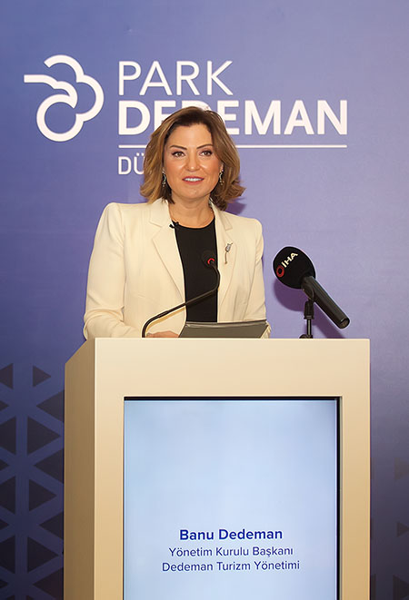 Düzce’nin tarihi ve coğrafi güzelliklerinin anlatıldığı tanıtım filmlerinin gösterimiyle başlayan törende ilk olarak Dedeman Hotels & Resorts International Yönetim Kurulu Başkanı Banu Dedeman söz aldı. Dedeman markası olarak, kurulduğu günden bugüne kadar, tam 55 yıldır, gerçekleştirdiği yatırımlar ve işlettiği otellerle ülkemiz için ekonomik değer ve istihdam yaratmayı hedeflediklerini belirten Banu Dedeman, “Türkiye’de saklı kalmış turizm değerlerini açığa çıkarma, bu değerleri ülke ekonomisine kazandırma ve tanıtma misyonumuzu Park Dedeman Düzce ile bir kez daha gerçekleştirecek olmanın heyecanını ve memnuniyetini yaşıyoruz. Türkiye’nin ilk uluslararası otel zinciri olarak hali hazırda 18 otelimiz, 2800 oda, 5700 yatak kapasitesi ve 1000’i aşkın çalışanımızla, bulunduğumuz her bölgede turizmin gelişmesine destek olduk. Sahip olduğumuz tecrübe ve bilgi birikimi, yetişmiş ve başarılı kadromuz, sürdürülebilir stratejimiz ile tüm dünyayı etkileyen pandemi döneminde de uzun vadeli hedeflerimizde bir değişiklik yapmadan büyümeye devam etmenin gurur ve mutluluğu içerisindeyiz” dedi.