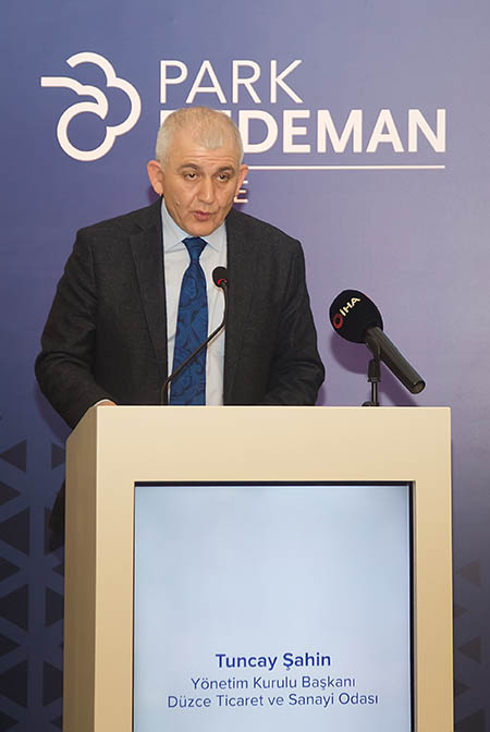 Cihat Algül’ün ardından sözü Düzce Ticaret ve Sanayi Odası Başkanı Tuncay Şahin aldı. Şahin konuşmasında, “Bu yatırım beni gerçekten çok heyecanlandırdı. 10-15 yıl önce Düzce’de beş yıldızlı bir otelin inşa edileceği söylense çok inandırıcı gelmezdi. Bu nedenle Park Dedeman Düzce yatırımında emeği geçen herkese çok teşekkür ediyorum. Yatırım kararı almak çok kolay değildir; birbirini etkileyen çok fazla bileşeni vardır. Ciddi ve güvenilir fizibilite çalışması gerekmektedir. Bu yatırımın Düzce’de yapılıyor olması şehrimizde büyük bir ışık olduğunu gösterir. Bundan sonraki turizm yatırımları için de çok iyi bir referans kaynağı olacaktır. Düzce’de önemli genç ve dinamik insan kaynağımız var. Akçakoca’da Turizm İşletmeciliği Otelcilik Yüksekokulu ile Gölyaka’da Aşçılık Yüksekokulu’nun bulunması bizim için büyük bir avantaj” diyerek Oda olarak, Düzce turizminin gelişmesine değer katacak tüm çalışmalara destek vereceklerini kaydetti.