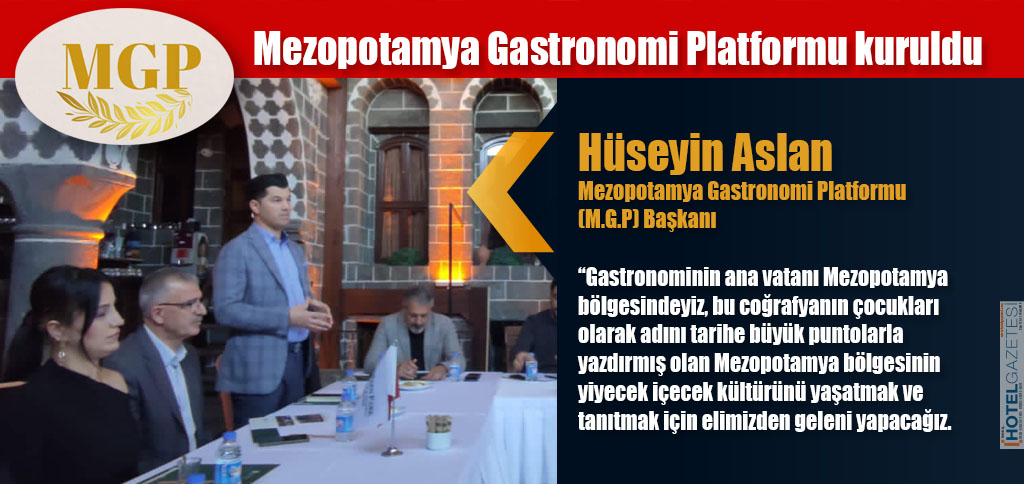 Diyarbakır’da düzenlenen ve yoğun ilgi gören ilk toplantıda Mezopotamya Gastronomi Platformu (M.G.P) Başkanlığına seçilen deneyimli turizmci Hüseyin Aslan şunları söyledi:“Gastronominin ana vatanı Mezopotamya bölgesindeyiz, bu coğrafyanın çocukları olarak adını tarihe büyük puntolarla yazdırmış olan Mezopotamya bölgesinin yiyecek içecek kültürünü yaşatmak ve tanıtmak için elimizden geleni yapacağız. Şehirlerimizin her biri Gastro-kent olabilecek potansiyele sahip. Bölgemiz için gastronomi alanında ortak akılla hareket edecek bir yapıya ihtiyaç olduğunu düşünüyorduk. Geniş katılımla ilk toplantımızı gerçekleştirdik. Toplantıya katılan başta Diyarbakır İl Kültür Turizm Müdürü Cemil Alp, Belediye Kültür Daire Başkanı Ali Çelik, Diyarbakır Üniversitesi Öğretim Görevlisi Ömer Fındıkdalı, eski Vakıflar Müdürü Metin Efsen, TGA Güneydoğu Anadolu Bölgesi Temsilcisi Selda Çiçek Veske’ye ve katılan diğer tüm misafirlerimize çok teşekkür ediyorum.Platformun kurulmasında bize her konuda fikir ve düşünceleriyle destek olan Gastronomi Dergisi Genel Yayın Yönetmeni Mehmet Güneli’ye de ayrıca çok teşekkür ediyorum. Amacımız kamu ve özel sektör iş birliğiyle Mezopotamya gastronomi kültürünü daha da yukarılara taşıyıp geniş kapsamlı çalışmalar yapabilmek. Katılım gösteren, destek veren herkese teşekkürlerimi sunuyorum.”