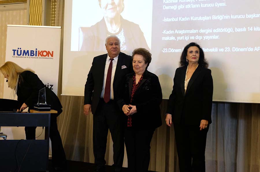Cam Tavanı Delen Kadınlar Platformu’nun düzenlediği, her biri kendi dalında uzman 15 kadına, bir ömür vererek yaptıkları başaralı çalışmalar için, “Emeğe Saygı Duruşu” ödül töreni gerçekleştirildi. 8 Mart Dünya Kadınlar Günü’ne atfen, Tüm Bürokratlar ve İş İnsanları Konfederasyonu TÜMBİKON ev sahipliğinde, Gayrettepe Dedeman Otel’de 15 Mart’ta gerçekleştirilen “Kadın Emeğine Saygı Duruşu” töreni klasik müzik dinletisi ve hoş geldiniz kokteyli ile başladı. Açılış konuşmasını Cam Tavanı Delen Kadınlar Platformu Başkanı ve TÜMBİKON Genel Başkan Yardımcısı Asuman Karaşabanoğlu yaptı. Karaşabanoğlu, 8 Mart gününün bir anma, bir kutlama günü değil, kadın emeğine bir saygı duruşu günü olduğunun altını çizdi.