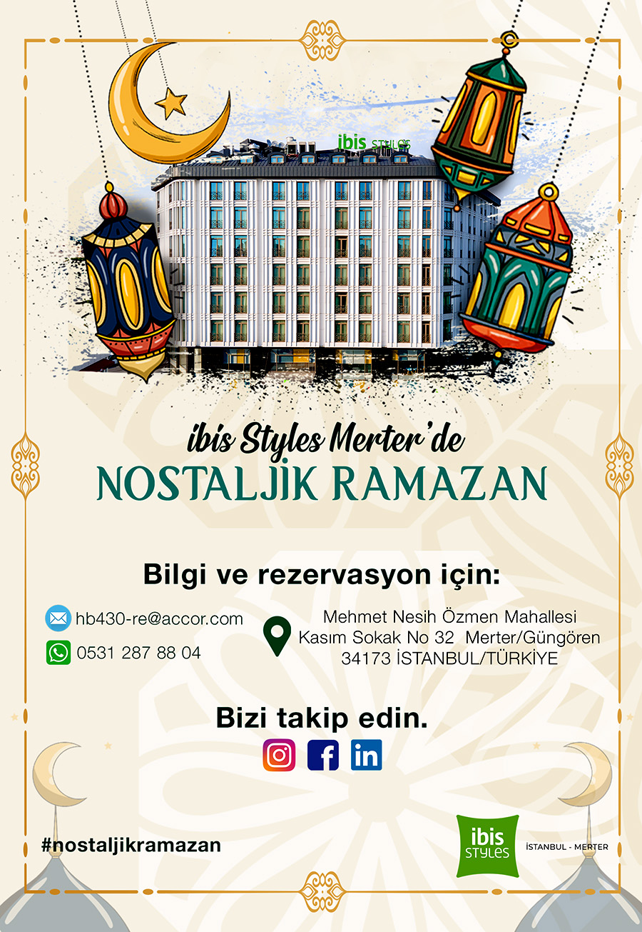 İslam dünyası, 2 Nisan’da başlayacak Ramazan ayı dolayısıyla son hazırlıklarını yaparken, İstanbul’daki otel ve restaurantlar hazırlıklarını tamamladı. Merter’de hizmet veren son dönemin trend otellerinden  İbis Style İstanbul, otel ve restaurant misafirlerine nostaljik bir Ramazan programı hazırladı. Özellikle Ramazan aylarında iftar sofralarında tercih edilen, damak zevkine uygun ‘Geleneksel Türk Mutfağı’ndan derlenmiş üç ayrı menü hazırlayan otel yetkilileri, ayrıca iftardan sonrası için de sürprizler hazırladı. Her çarşamba ve cuma günü, alakart restoranında verilecek davetlere özel fasıl dinletisi, canlı müzik ve özel organizasyonlarda semazen gösterileri ve Yeşilçam sineması ile iftarını açan misafirlerine eski Ramazan eğlencelerinden kesitler sunacak.