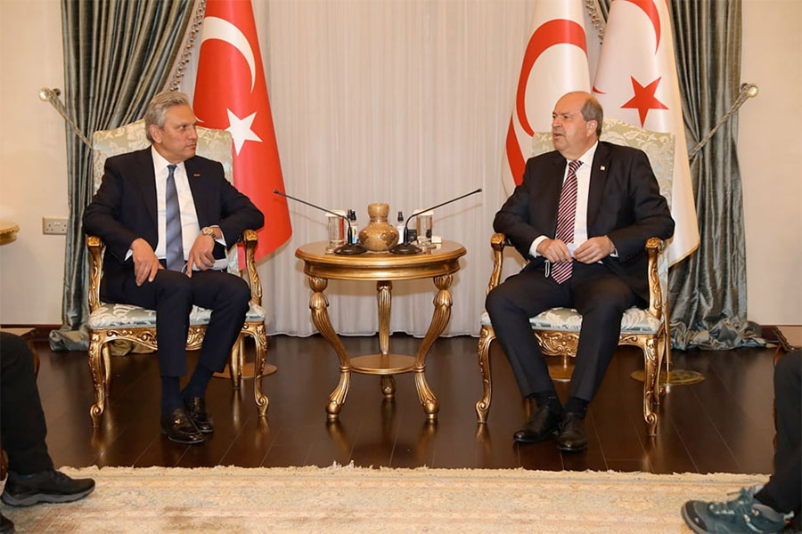 TÜRSAB Yönetim Kurulu Başkanı Firuz B. Bağlıkaya ve beraberindeki Yönetim Kurulu Üyeleriyle, Kuzey Kıbrıs Türk Cumhuriyeti Cumhurbaşkanı Sayın Ersin Tatar’ı makamında ziyaret etti. Ziyaret kapsamında düzenlenen toplantıda, Kuzey Kıbrıs Türk Cumhuriyeti’nin turizmin her alanında gelişmesi üzere görüş alışverişinde bulunuldu. Cumhurbaşkanı Ersin Tatar, toplantı ile ilgili gazetecilere şu ifadelerde bulundu: ‘‘Dünyanın her yerinden misafirlerimiz geliyor ama en çok turisti ana vatandan gelen kardeşlerimiz oluşturuyor. Dünyada artan turizm maliyetleri malum, bu çerçevede Türkiye’den yurt dışına gitmek isteyenlerin KKTC’yi değerlendireceklerini düşünüyorum. Sadece talih oyunları ile değil denizimiz, gastronomimiz, tarihi ve kültürel zenginliğimizin de ön plana çıkmasını istiyoruz. Kıbrıs, Doğu Akdeniz bölgesinin en eski yerleşim yeri. Her tarafımızda birçok uygarlıktan benzersiz örnekler mevcut. Yemek çeşitliliği inanın herkesi şaşırtacak kadar zengin.’’