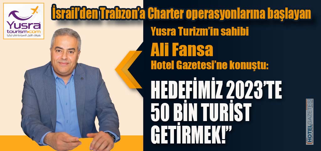 İsrail’den Trabzon’a Charter operasyonlarına başlayan Yusra Turizm’in sahibi Ali Fansa Hotel Gazetesi’ne konuştu: “HEDEFİMİZ 2023’TE50 BİN TURİST GETİRMEK!”