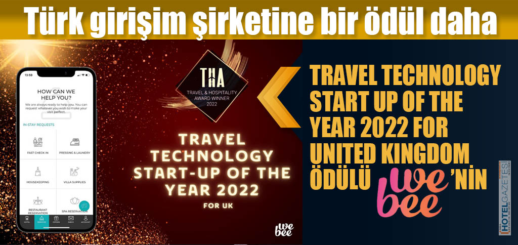 Dünya’nın en prestijli seyahat endüstrisi ödüllerinden Travel & Hospitality Awards, sahiplerini buldu. Jürinin çok detaylı bir değerlendirme sürecinden geçerek Avrupa ve İngiltere’deki rakipler arasında öne çıkan ve Türk şirketi WeBee, Travel Technology Start Up of the Year 2022 for United Kingdom ödülünün sahibi oldu. En iyi otelleri, tur operatörlerini, deneyim sağlayıcıları, spa & sağlıklı yaşam tesislerini, restoranları ve teknoloji ve inovasyon şirketlerini ödüllendiren seyahat endüstrisi için küresel bir tanınma olan Travel & Hospitality ödülleri, Dünyanın en prestijli turizm ve seyahat ödüllerinden biri olarak kabul ediliyor.