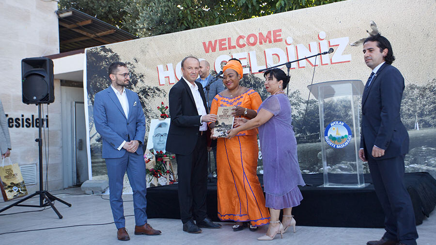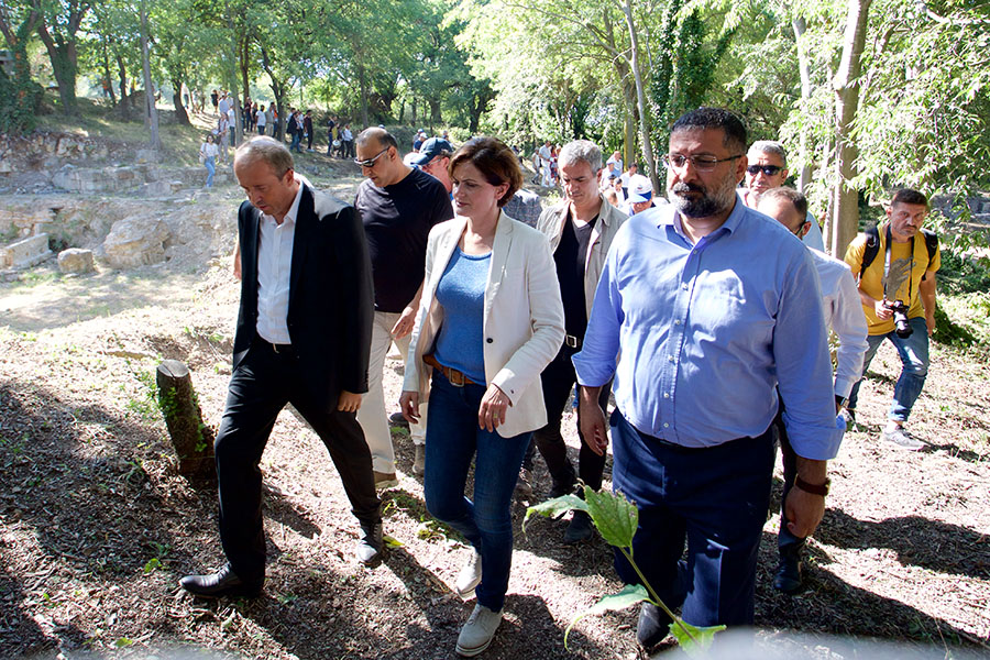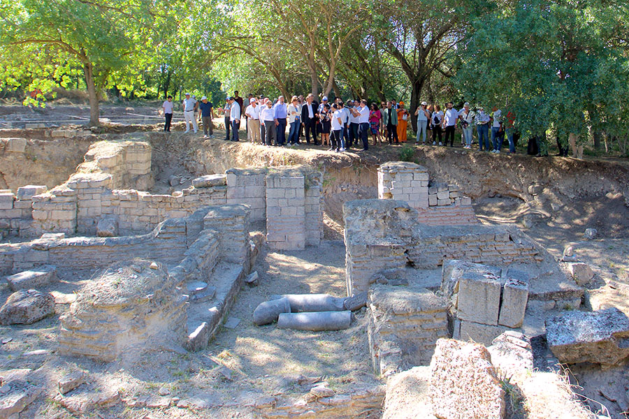 Bathonea Arkeolojik Kazı Alanı’ndaki çalışmaların Kazı Başkanı Prof. Dr. Şengül Aydıngün’ün rehberliğinde antik kenti ziyaret eden davetliler, araştırma süreci ve alanın tarihi hakkında bilgilendirildi. Antik Kent’te yapılan incelemelerin ardından Avcılar Belediye Başkanı Hançerli, kazı heyeti ve davetlilere kitap hediye ederek birlikte hatıra fotoğrafı çekildi.
