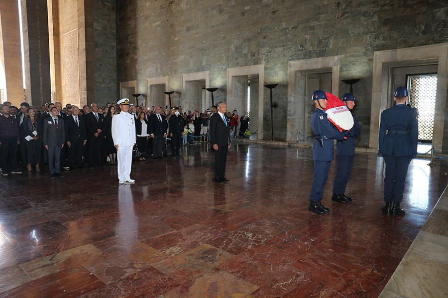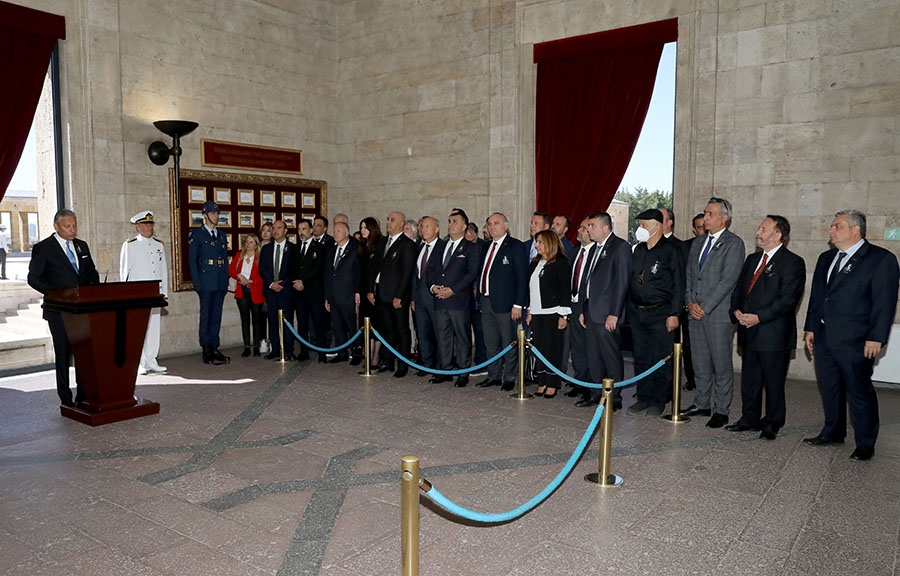 Anıtkabir Özel Defteri’ni imzalayan Başkan Firuz B. Bağlıkaya, anı defterine, “Bizlere emanet ettiğiniz Cumhuriyetin ışığında, barış ve huzurun geliştirdiği ülke turizmimizi tüm dünyaya tanıtırken, yol gösterici ilkelerinizin daima koruyucusu ve kollayıcısı olacağız” diye yazdı.