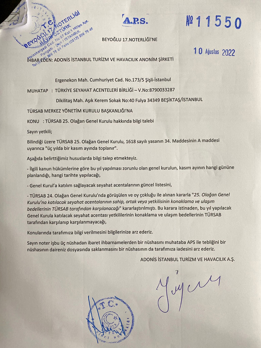 Yeni Nesil TÜRSAB Hareketi Lideri Tamer Çiçek: “3 konunun açıklığa kavuşması için noter kanalı ile 10 Ağustos’ta başvuru yaptık, hala yanıt gelmedi.”