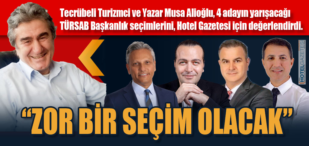Tecrübeli Turizmci ve Yazar Musa Alioğlu, 4 adayın yarışacağı TÜRSAB Başkanlık seçimlerini, Hotel Gazetesi için değerlendirdi.