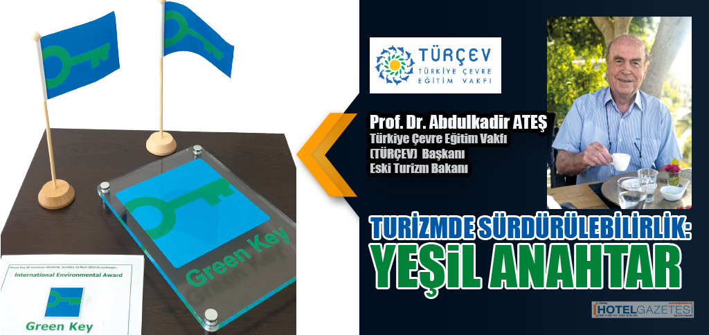 Türkiye Çevre Eğitim Vakfı (TÜRÇEV) başkanı ve Eski Turizm Bakanı Prof. Dr. Abdulkadir ATEŞ, Turizmde sürdürülebilirliğin yaygınlaştırılmasına önemli katkı sağlayan ve gün geçtikçe tüm dünyada önemi artan Yeşil Anahtar projesi hakkında, Hotel Gazetesi’ne bir değerlendirme yaptı.