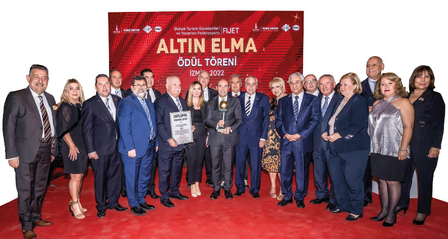FIJET (Dünya Turizm Yazarları ve Gazetecileri Federasyonu) tarafından verilen Altın Elma Ödülü; turizmi geliştirip, yükseltmek, sürdürebilirlik sağlamak konusundaki etkin çabaları ve başarılarından dolayı 7 – 9 Kasım 2022 tarihleri arasında gerçekleşen etkinlikler ve ödül töreni ile İzmir Büyükşehir Belediye Başkanımız Tunç Soyer’e takdim edildi.