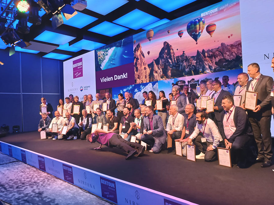 Türkiye’ye geçen yıl Avrupa’dan 100 binin üzerinde turist getiren Avrupa’nın en büyük Türk tur operatörü Bentour Reisen, 2023’te 200 binin üzerinde koltuk satmak için kollarını şimdiden sıvadı. Avrupa’dan 800 acenteyi “Türkiye Tanıtımı & Comedy Night 2022” programı kapsamında Antalya otellerinde ağırlayan Bentour Reisen, pandeminden sonra ilk defa gerçekleştirdiği dev organizasyonda Türkiye 2023 katalog tanıtımı, seyahat fuarı, çeşitli turlar ve geziler düzenlendi.