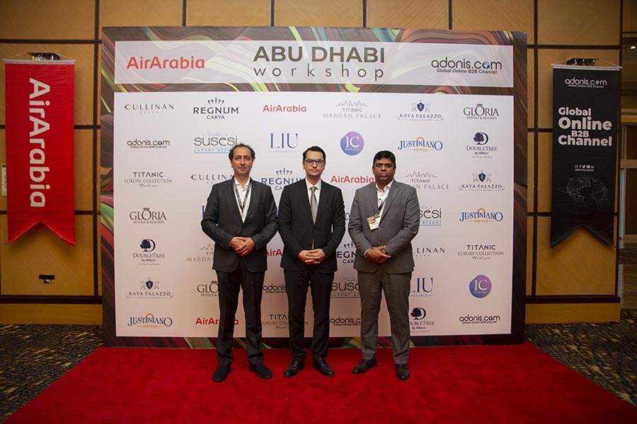 adonis.com GSA’sı olduğu Air Arabia ve Antalya’nın önde gelen otelleri ile birlikte Abu Dabi’de yer alan Le Royal Méridien Abu Dhabi Hotel’de bir workshop düzenledi. Air Arabia’dan Ticaret Müdürü Zaneer Veettıl’ın da katıldığı workshop’da Dubai ve Abu Dabi’den birçok acenta ve turizm şirketi yer aldı. Ayrıca Dubai Ticaret Ateşesi Hacı Hasan Kaygısız da ziyaret ettiği workshop’da katılımcı otellerin standlarını gezerek çalışmaları hakkında bilgi alışverişinde bulundu.