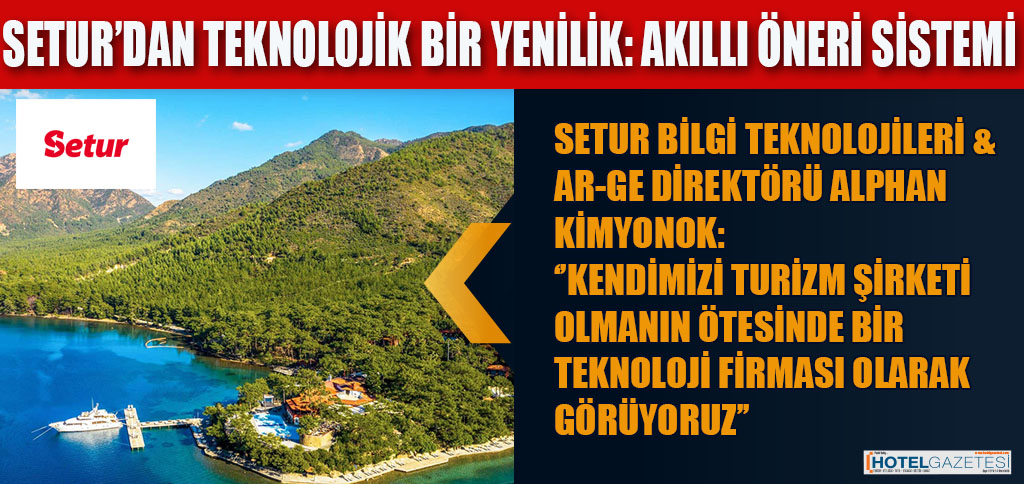 Müşteri memnuniyetinde üst üste 3. kez turizm sektörü birincisi olan Setur, seyahat teknolojileri üreten bir teknoloji markası olma hedefi ve seyahat sektöründe global oyuncu olma vizyonuyla çalışmalarını sürdürüyor. Kurumsal ve bireysel seyahat yönetimi alanındaki operasyon gücünü, bilgi birikimini, tecrübesini, en güncel ve öncü teknolojilerle birleştiren Setur, son olarak kullanıcılarına en uygun otel ve tur seçeneklerini sunan Akıllı Öneri Sistemi’ni geliştirdi. Tamamı Setur yazılım ekibi tarafından geliştirilen Akıllı Öneri Sistemi ile yurt içi, yurt dışı otel ve tüm turlar için birbirinden farklı çalışan 2 yapay zeka algoritmasını devreye aldı. Öneriler bölge, konaklama tipi, fiyat aralığı gibi özelliklere dayalı yapılan analizler ve müşteri davranışlarına göre hazırlanıyor. Sistem, bu iki algoritmayı akıllı bir şekilde birleştirerek son kullanıcıya en uygun öneriyi sunuyor.