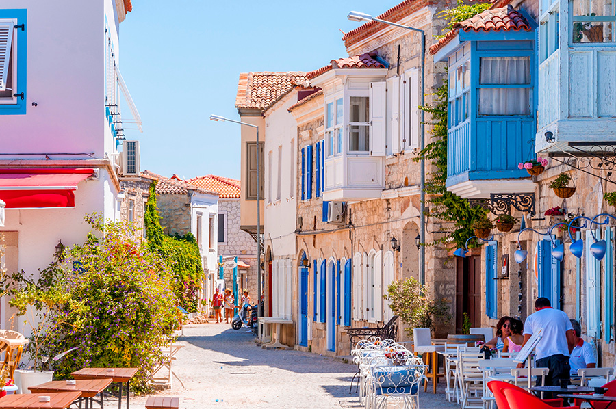 Alacati, Turkey – July 15, 2012: View from Alacati, a popular summer destination on the Aegean coast of Turkey in Izmir Province, Turkey.