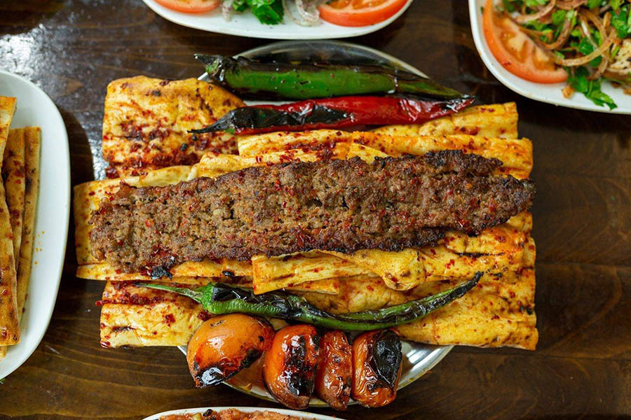 Adana’nın en ünlü yemeklerinden biridir. Baharatlı bir kıyma karışımından yapılan Adana kebabı, şişe takılıp mangalda pişirilir ve genellikle lavaş ekmeği ve turşu ile servis edilir.