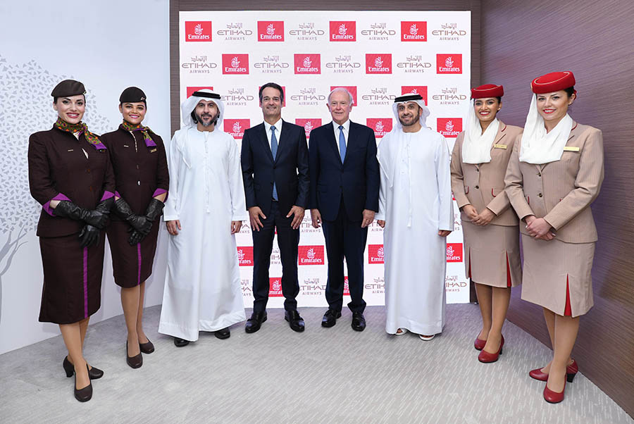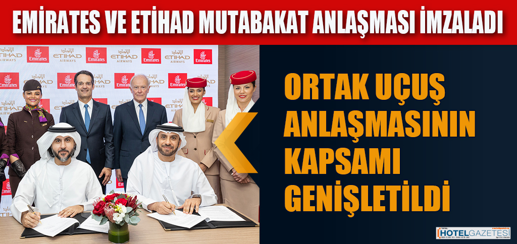Mutabakat Anlaşması, Arabian Travel Market fuarında Emirates Ticari İşler Direktörü Adnan Kazım ve Etihad Havayolları Operasyon Direktörü Mohammad Al Bulooki tarafından Emirates Havayolu Başkanı Sir Tim Clark ile Etihad CEO’su Antonoaldo Neves’in ve diğer kıdemli yöneticilerin katılımlarıyla imzalandı.