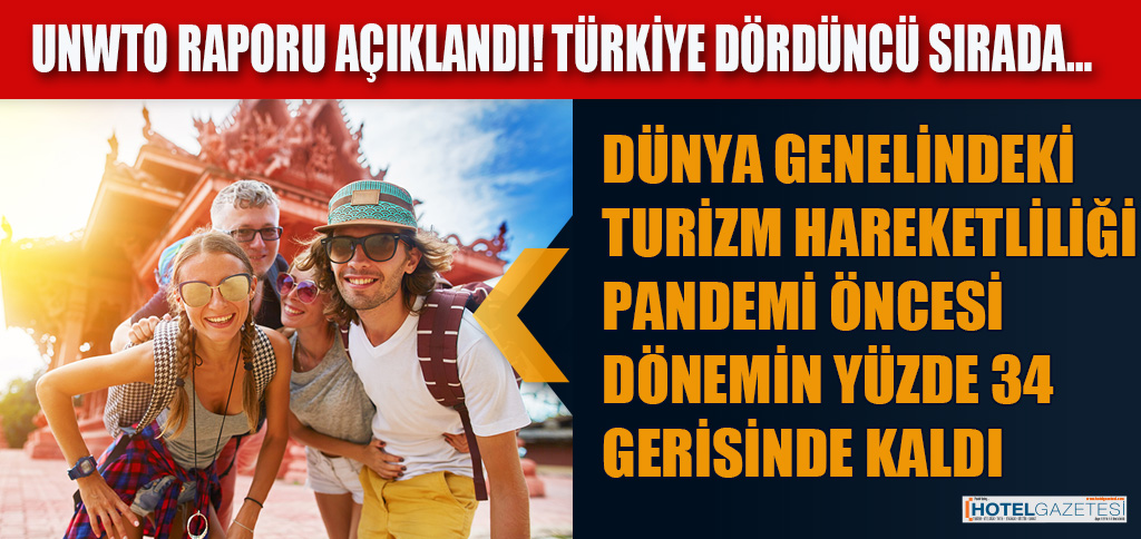 Dünya turizm verilerini derleyen UNWTO raporu açıklandı. 2022’de dünya genelindeki turizm hareketliliğinin, 2019 pandemi öncesinin yüzde 34 gerisinde kaldığı görüldü. Rapora göre, 2022’de dünya genelinde 963 milyon turist seyahat gerçekleştirildi.