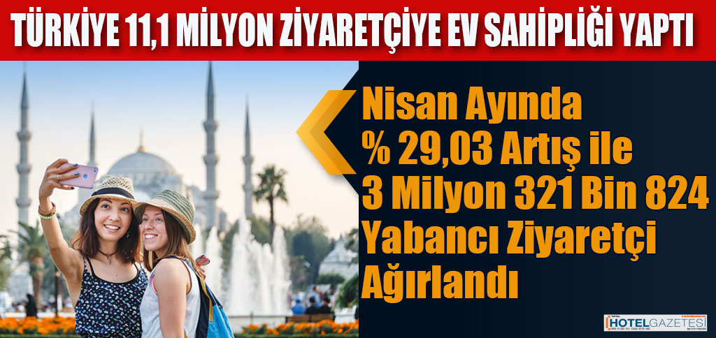 Türkiye nisan ayında da bir önceki yılın aynı ayına göre yüzde 29,03 artış ile 3 milyon 321 bin 824 yabancı ziyaretçi ağırladı.