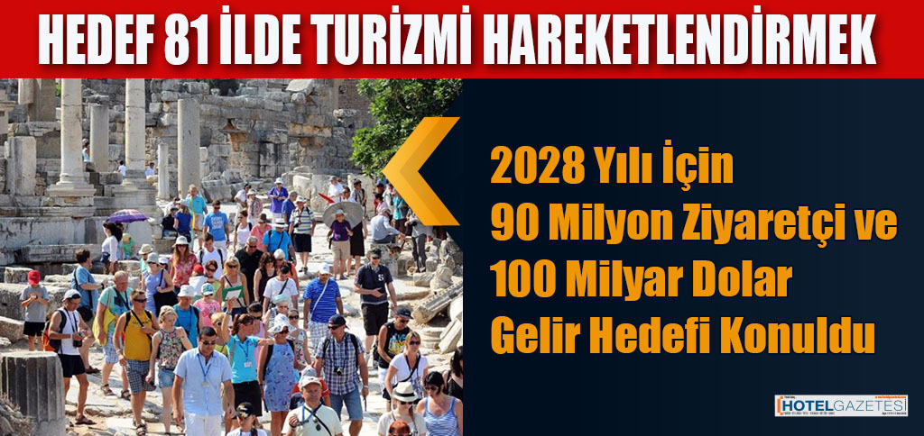 Milliyet’ten Meltem Güneş’in haberine göre; Turizm sektöründe önemli adımların atılması planlanıyor. Deniz turizminin yanı sıra kültür, doğa, tarih, sağlık, termal ve kış turizmi, kongre ve etkinlik gibi her alanda turizmin çeşitlendirilmesi için çalışmalar yürütülecek. Geçen yıl 51,4 milyon turist, 46,3 milyar dolarlık bir turizm gelir elde edilirken, 2028 yılı için 90 milyon ziyaretçi ve 100 milyar dolar gelir hedefi konuldu.