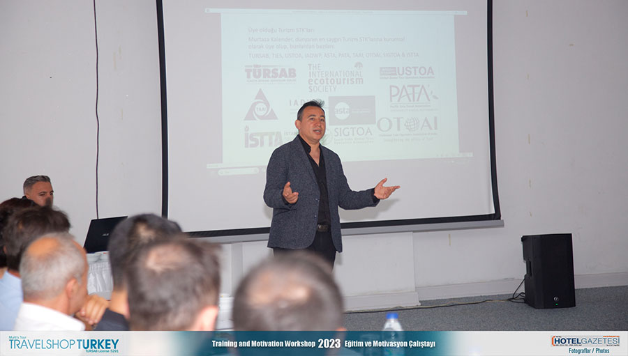 Aynı zamanda Uluslararası Ekoturizm Derneği Başkan Yardımcısı ve Uluslararası Destinasyon Düğün Profesyonelleri Derneği Avrupa ve Asya’dan Sorumlu Başkan Yardımcısı, İstanbul Turizm Derneği (İSTTA) Yönetim Kurulu Üyesi olan TravelShop Turkey Yönetim Kurulu Başkanı Murtaza Kalender, geceye damga vuran şu motivasyon konuşmasını yaptı: “Biz hiçbir zaman ofiste oturup, iş beklemedik. Şirket olarak her zaman farklı şeyler ürettik. Neler yapabiliriz diye düşündük. Hatta paket turlarında, kültür turlarında lider olduğumuzu düşünüyorum. Anadolu’da 45 günlük programlar yapan bir şirketiz. 2006 yılında Güneş Tutulması Turu yaptık. Çünkü dünya dönüyor. Dünya döndükçe her zaman bir etkinlik ve bir aktivite yapabiliriz. Yeni bir şeyler katabilmek önemli. İşler elinize gelmiyor. İşleri kovalamanız gerekiyor.